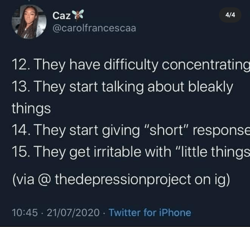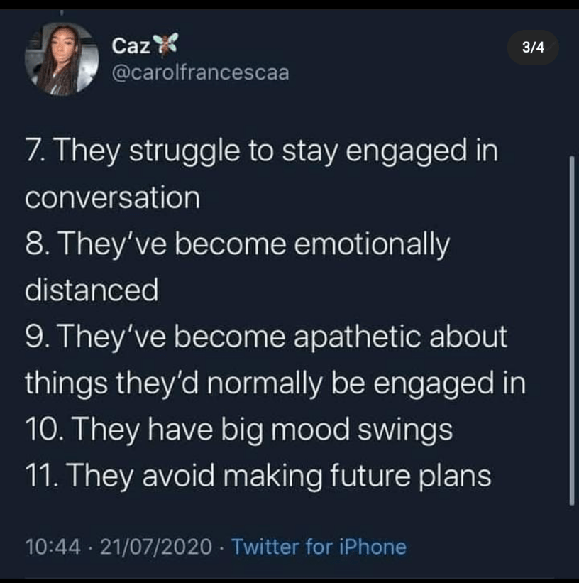 Luckily for me, I’ve been in this state before many times in 49 years. I saw this one coming and called my therapist. Haven’t seen her in almost six years. Things had been going pretty well. I’ve just hit a massive downturn as of late with my changing job situation and a major hit to my self esteem. After all this time, I do know what to look for.