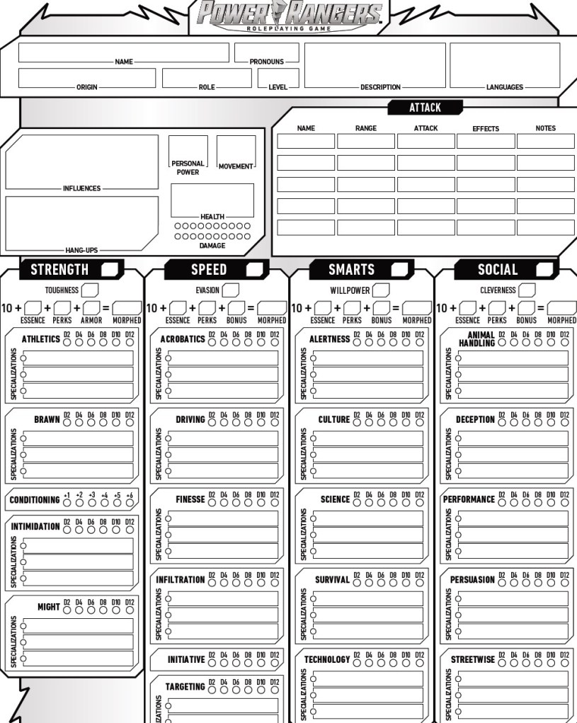 I think Essence20 was really developed with fans of specific franchises in mind like GI Joe and Power Rangers. It’s fast to learn and build characters and emulates whichever series in question quite well. They’re almost as good at genre emulation as Spectrum Games. You can already recreate just about any character from either GI Joe or Power Rangers series pretty rapidly just by knowing the character and looking at Essence20.