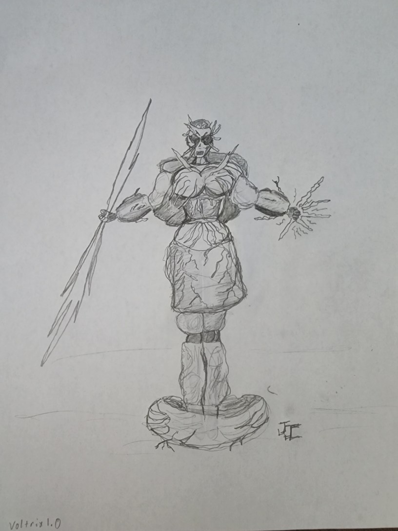 Storm Rage: Once per scene Voltrix can unleash a devastating electrical tornado Large Base Evasion Electrical 3 under Voltrix’s direct control for 3 rounds. Movement 40’/round.