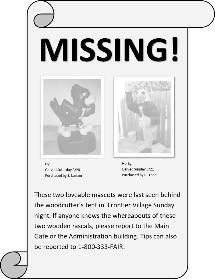 Further investigation revealed one of the Fair sanitation workers had seen two “young kids in what looked like mascot costumes” running away from the scene.