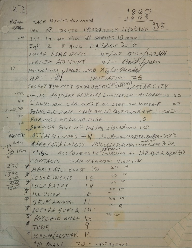 Heck, by the time I got to college, I could write down an entire DC Heroes character from scratch without even picking up a rulebook and still have it come out balanced and point correct. But there were a few games that gave us a tough time and required a trip to the copier, unfortunately.