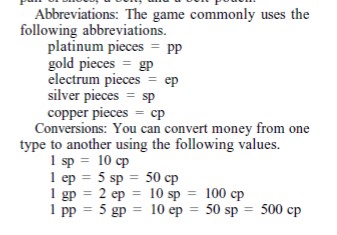 Adventurers walk around with hundreds, even thousand of Gold Pieces (GP), yet most commoners make their wages in terms of Copper (CP) and Silver (SP.)