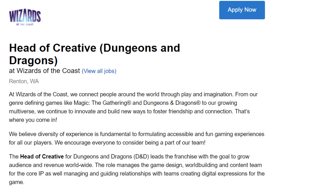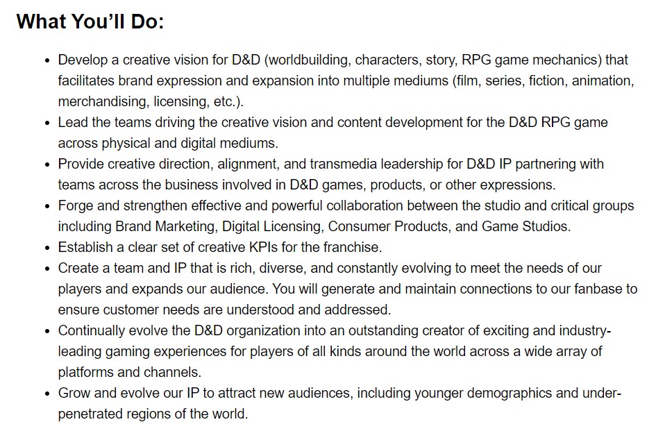 The posting describes a lot about the job, and some of what they’re planning for One D&D.