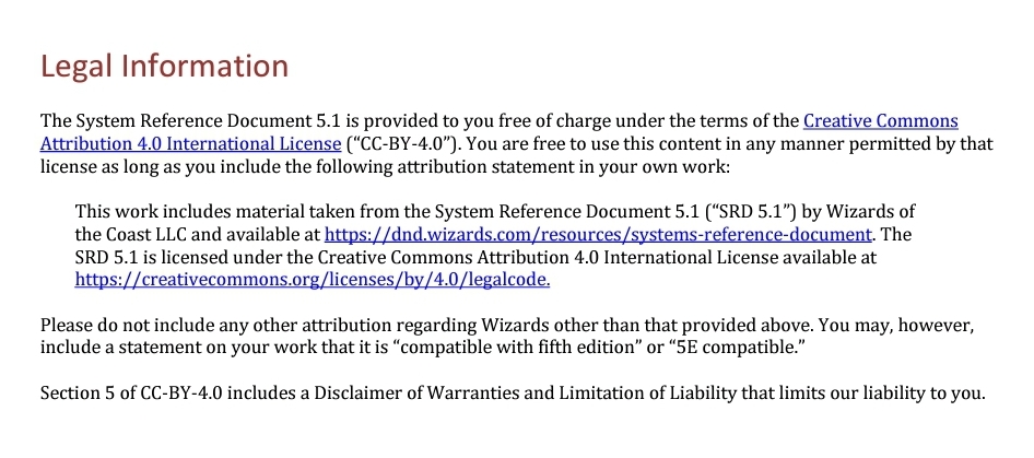 Yes, mission accomplished. We can keep making older edition stuff forever under OGL 1.0a and SRD 5.1 CC-BY-4.0. That’s lovely. WotC theoretically threw us a bone. Reasons why will likely remain a mystery.