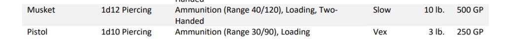 I’m gong to be honest. I’ve never liked guns in my swords and sorcery fantasy games. It’s my preference. What works for me doesn’t necessarily work for everyone.
