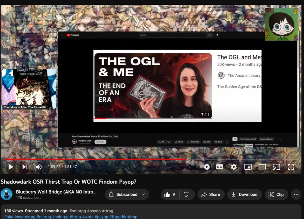 Btw, did you know “that chick” you were dissing on has TTRPG writing credentials that predate Shadowdark by quite a bit? Did you know the Arcane Library has been around longer than three years? No? They’ve been on YouTube since 2017 and have 18K+ subscribers. Hmm. Sounds a lot like someone knows what she’s doing.