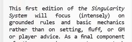 There are also no aliens, ancestries of any kind, or really any species in the Core book beyond regular humans. The Xel are a free “module” aka sourcebook. i could just as easily pull aliens in from any other number of games if we wanted to go there. For my Singularity campaign, I’d keep it mostly on Earth. I pictured kind of a Dark Matter sort of series.
