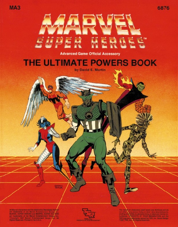 The Ultimate Powers Book is still far and away one of the all time best sourcebooks written for any game. It added incredible amounts of depth and options for MSHRP games. Not to mention every and any super power one could think of from Marvel comics along with cool power stunts. It also set an example of how amazing supers roleplaying can be.