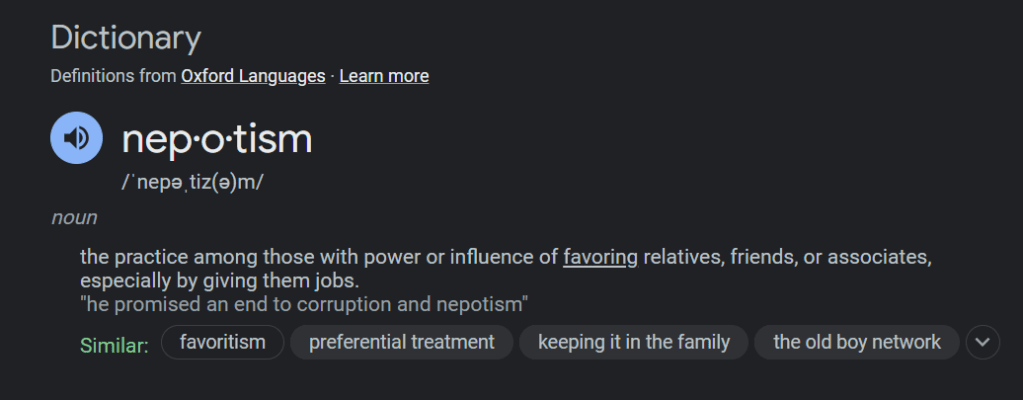 I’ve come to the conclusion that the TTRPG industry is all about who you know or who you bl🦆w. (I can say it here. Sorry for the sailor talk.) It’s truthfully all about the nepotism. Wizards of the Coast has their own special hiring practices, I’m sure. Looking at Hasbro? I’d still say there’s a little nepotism there.