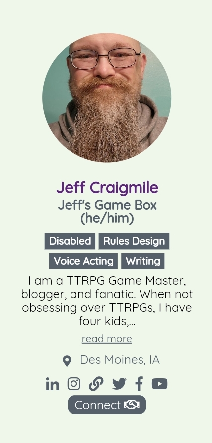 My name is one of many very capable and talented people in the TTRPG hobby listed here. There are all walks of the hobby represented from Actual Play producers, editors, designers, writers, artists, and even voice actors. (*I’m low key terrified, but I’ve always wanted to try voice acting. I think I’d be good at it.)