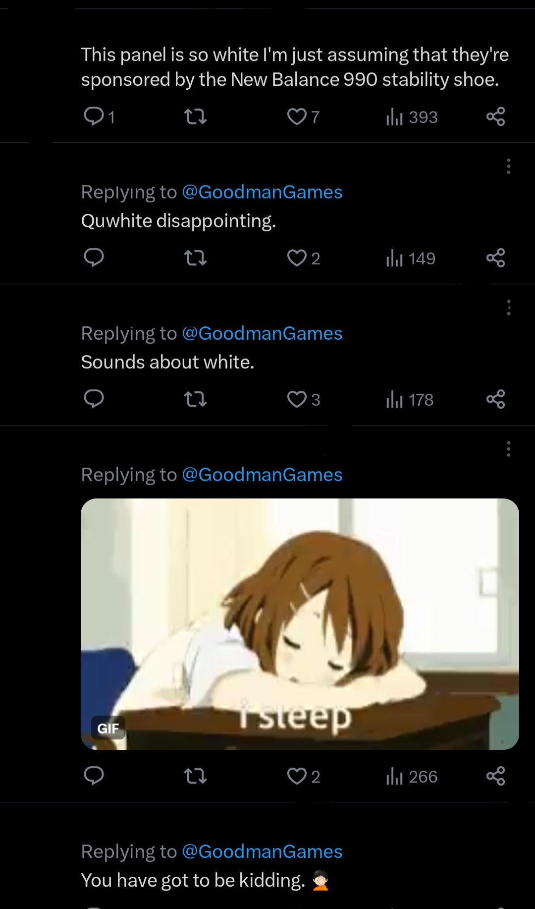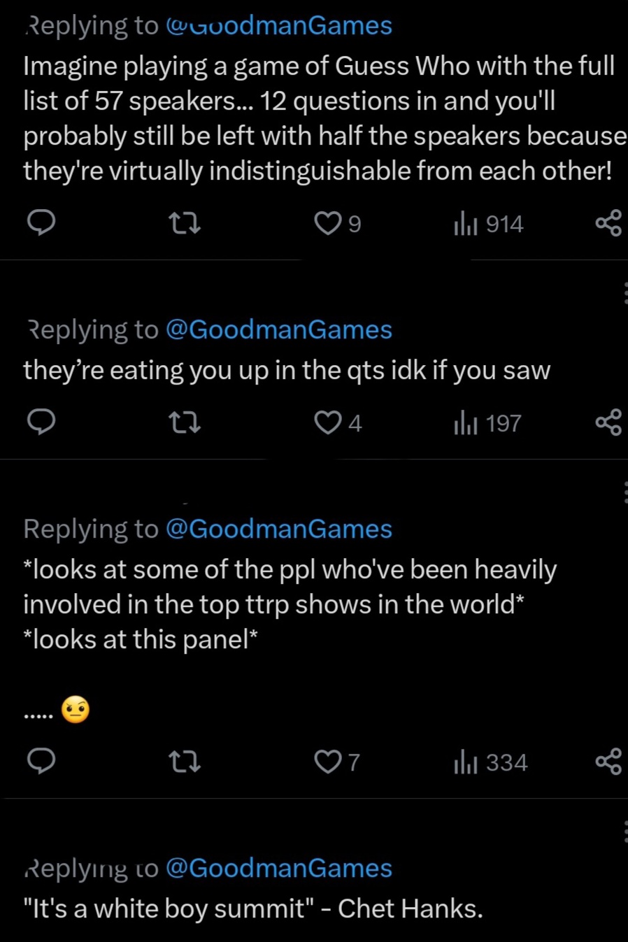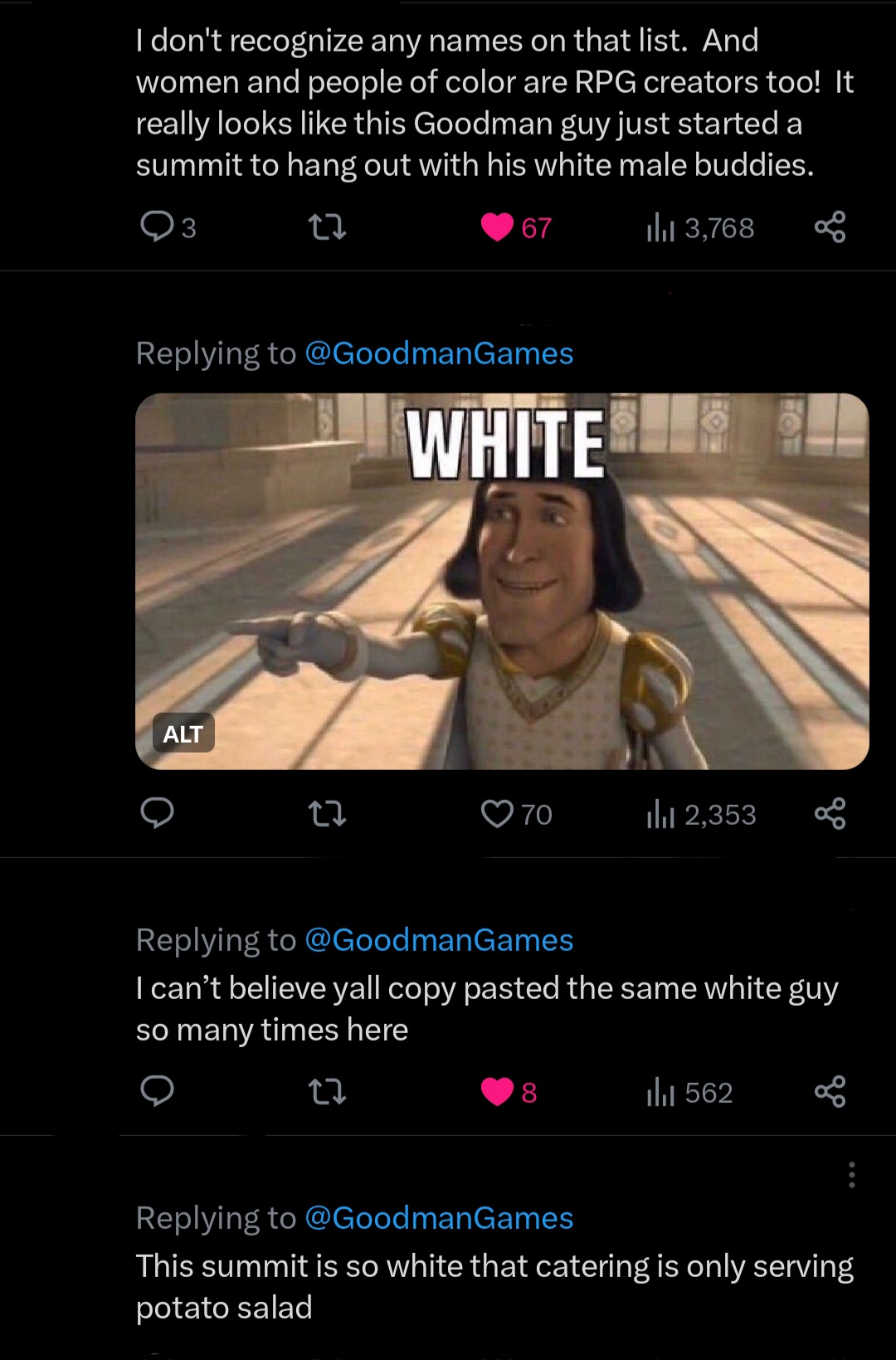 Of course, following the cancellation I’d say, “Hope to see an exclusively BIMPOC/LGBTQIA/Neurodiverse/Womyn’s RPG Creator Summit real soon.”