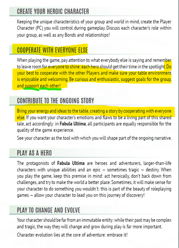 I wish every TTRPG had a page like this. That’s what we’re here to do in the #ttrpgcommunity. Play fun games with each other, get along, and build a hobby together. Let’s strive for that, please.