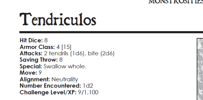 I will be converting Tendriculos as well as some of the other woodsy monsters I mentioned today over to Shadowdark RPG. I’m considering creating a woodland nightmare in the depths of the dark woods. I had a really nice run with one in another campaign and it’s so much fun.