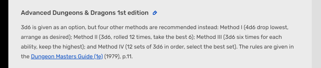1st Ed AD&D Unearthed Arcana gave us Method V character creation option. Prior to that, the various methods were outlined in the AD&D Dungeon Master’s Guide. The likelihood of getting exactly the roll one desired improved significantly with some methods to the point where one may as well just assign the 18 and get it over with.