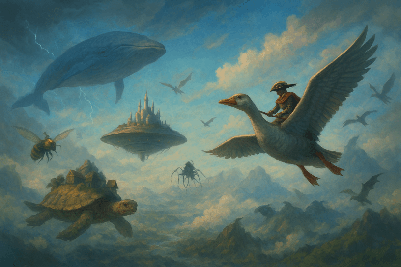 Flying monsters are always cool, but once you have trotted out the dragons, griffons, and harpies, things start to feel a little familiar. That is where the real fun begins. Flying whales and sky worms are the backbone of what I like to call vertical folklore, the stories we tell about the things floating above our heads. Some say the whales drift lazily through the clouds, filtering vapor and singing storms into being. Others swear they are only the juveniles of something vast and ancient that still slumbers in the upper air.